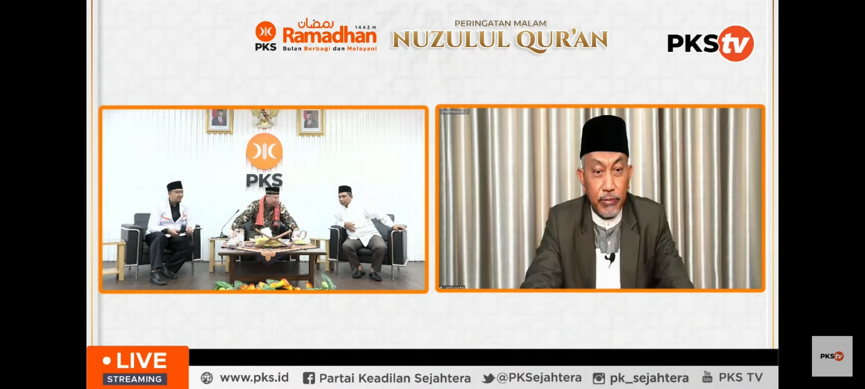Jakarta | Partai Keadilan Sejahtera (PKS) menggelar peringatan Nuzulul Quran, Kamis (21/4/2022) acara yang mengusung tema Al Quran Membawa Pesan Islam Rahmatan Lil Alamin digelar secara hybrid.