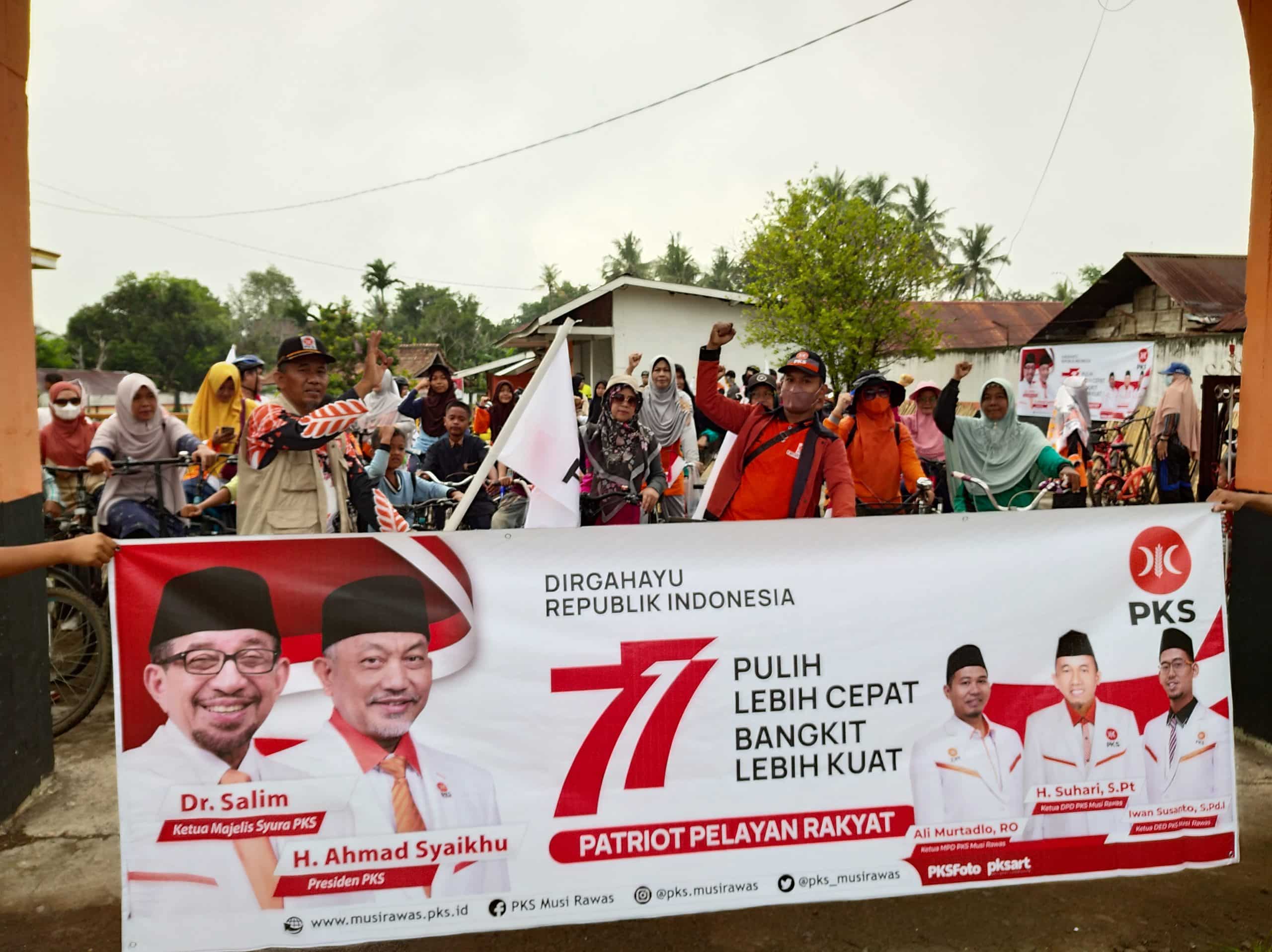 TUGUMULYO | Partai Keadilan Sejahtera (PKS) Kabupaten Musi Rawas turut memeriahkan perayaan Hari Ulang Tahun Kemerdekaan Republik Indonesia yang ke – 77 dengan melaksanakan berbagai kegiatan lomba.